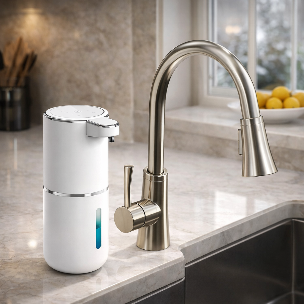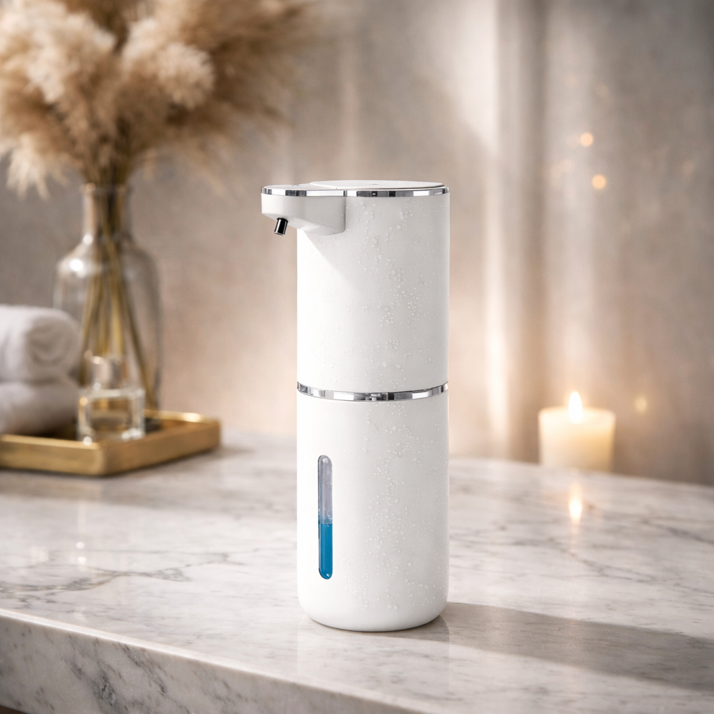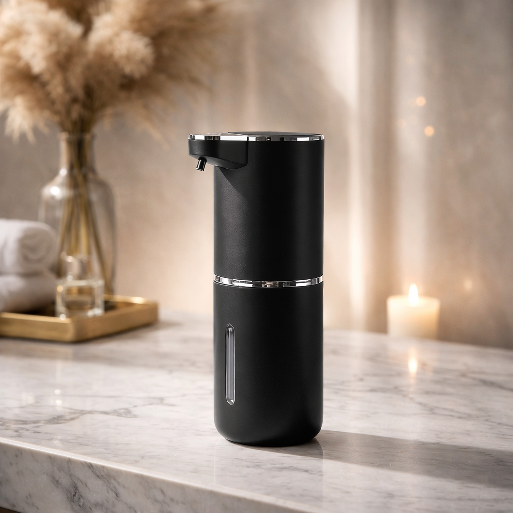 Willkommen im Zeitalter der hygienischen Unkompliziertheit! Der automatische Seifenspender Finn von Novendi bringt luxuriöses Hotelambiente in Ihr Zuhause. Keine schmutzigen Hände mehr auf dem Seifenspender, dieser intelligente Spender gibt automatisch die perfekte Menge Seife ab, ohne dass Sie ihn berühren müssen. Flexibel aufstellbar oder aufhängbar, leicht nachzufüllen, wiederaufladbar und immer einsatzbereit. Sauber, stilvoll und unglaublich praktisch. Denn Ihre Hände müssen sauber sein, aber Ihr Leben sollte nicht komplizierter werden.