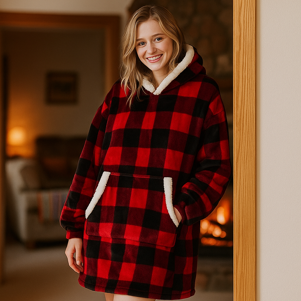 Kuscheln Sie sich in den Novendi Decke Hoodie Cuddle, Ihren neuen besten Freund für gemütliche Tage. Dieser übergroße Fleece-Hoodie in Einheitsgröße hüllt Sie in weiche Wärme und ist perfekt zum Entspannen, für Filmmarathons oder kühle Morgenstunden. Bleiben Sie bequem, bleiben Sie warm und lassen Sie das Kuscheln beginnen!