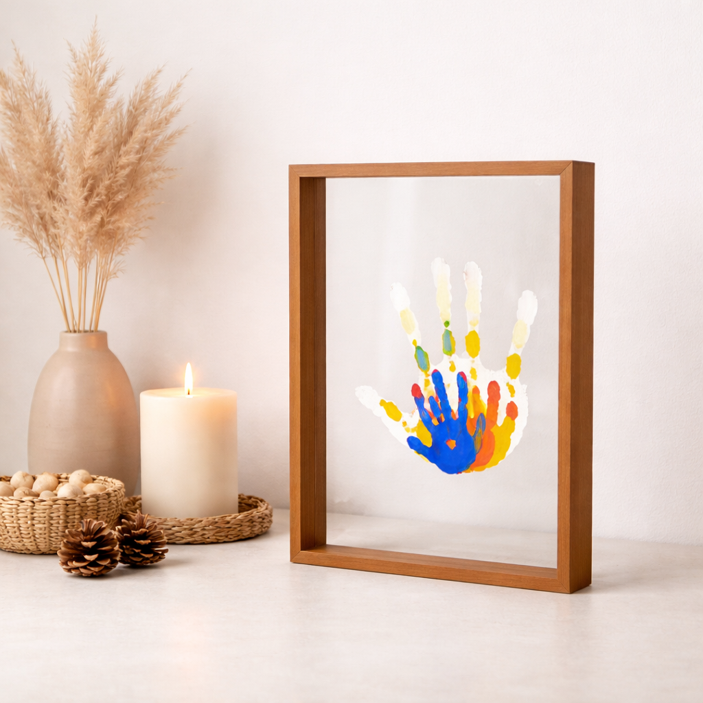 Dieser Erinnerungsrahmen wurde entworfen, um wertvolle Momente in Ihrem Zuhause sichtbar zu machen. Die Kombination aus Foto und Abdruck sorgt für eine warme, persönliche Ausstrahlung und macht den Rahmen perfekt als Dekoration im Babyzimmer, Wohnzimmer oder als besonderes Geschenk zur Geburt.