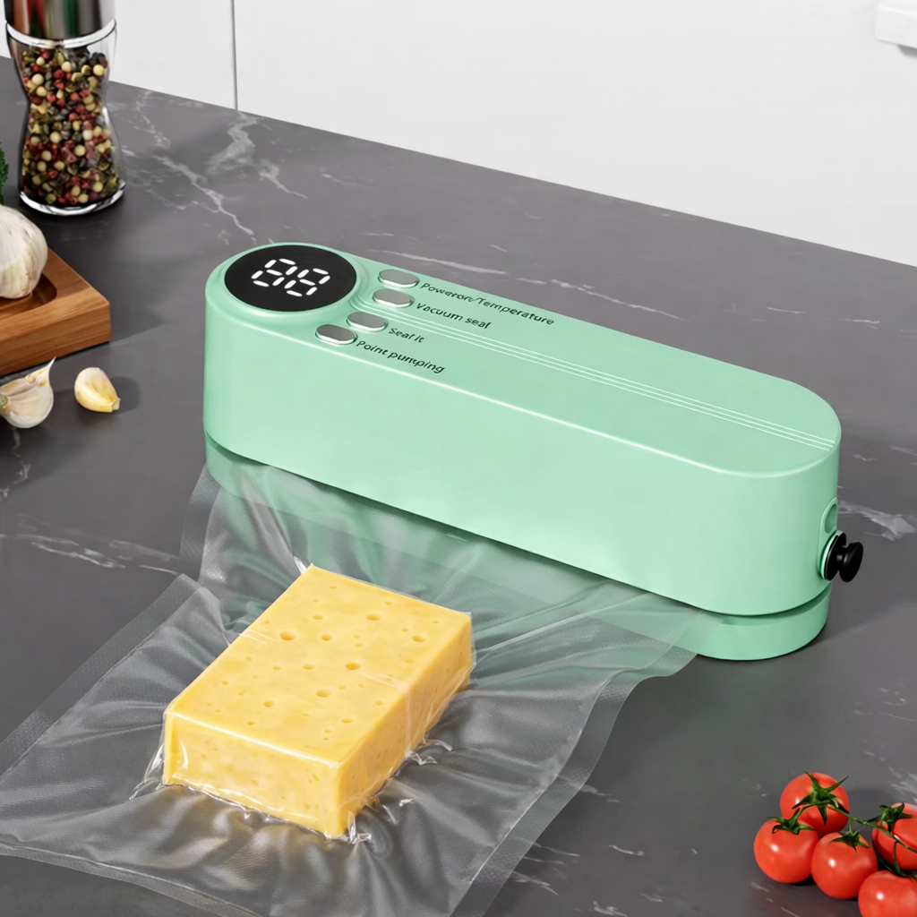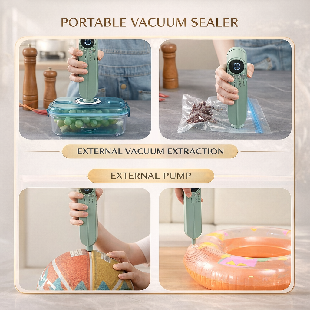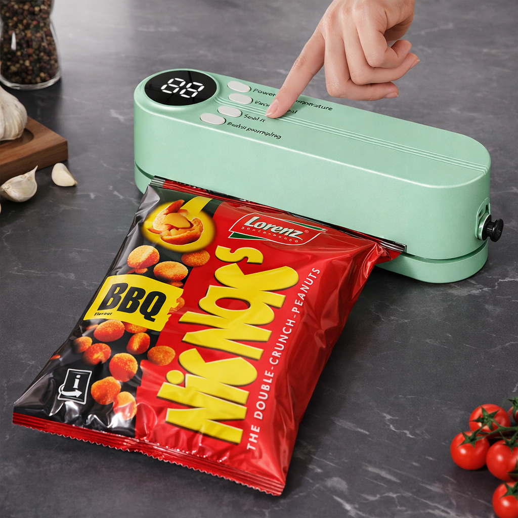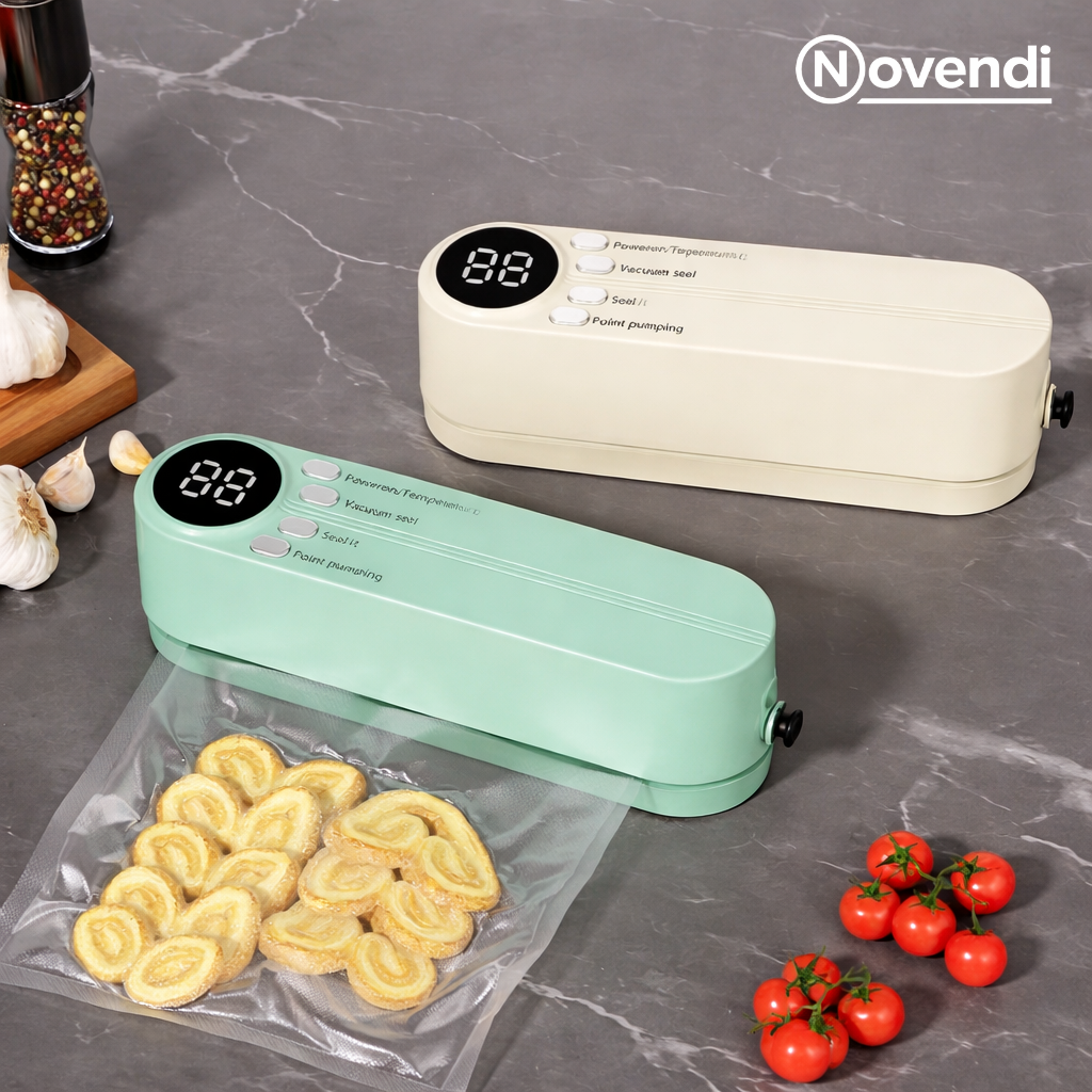 Der kabellose Vakuumierer Kass von Novendi ist Ihr neuer bester Freund in der Küche! Dieses kompakte Wundergerät funktioniert komplett kabellos und ist wiederaufladbar, sodass Sie überall vakuumieren und versiegeln können, zu Hause, auf dem Balkon oder sogar im Urlaub. Mit der eingebauten Luftpumpe entfernen Sie mühelos Luft aus Beuteln und Behältern, wodurch Ihre Lebensmittel deutlich länger frisch bleiben. Außerdem kann das Gerät auch als Luftpumpe verwendet werden.