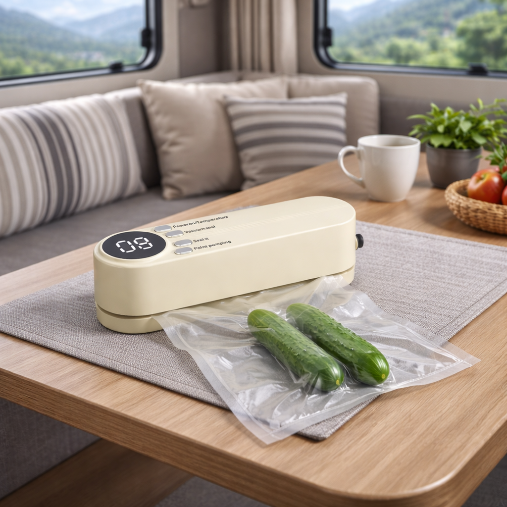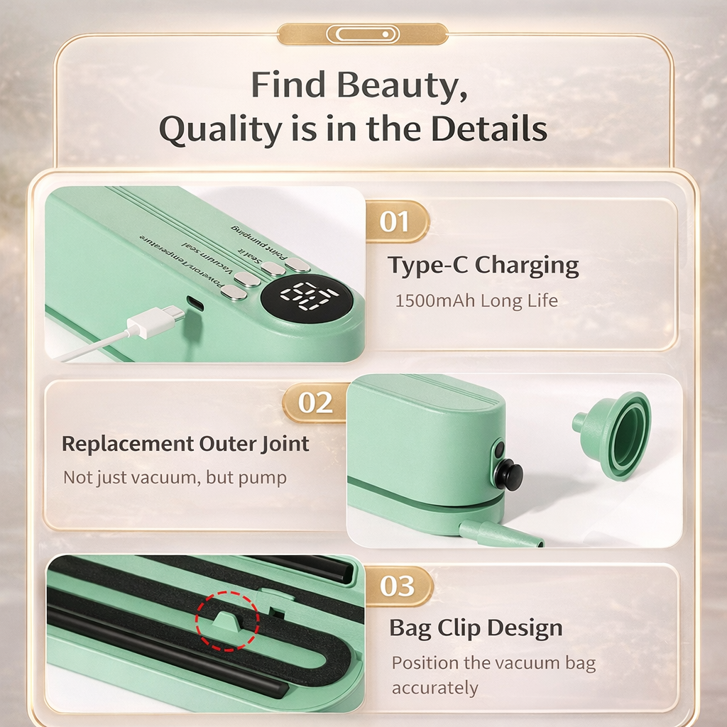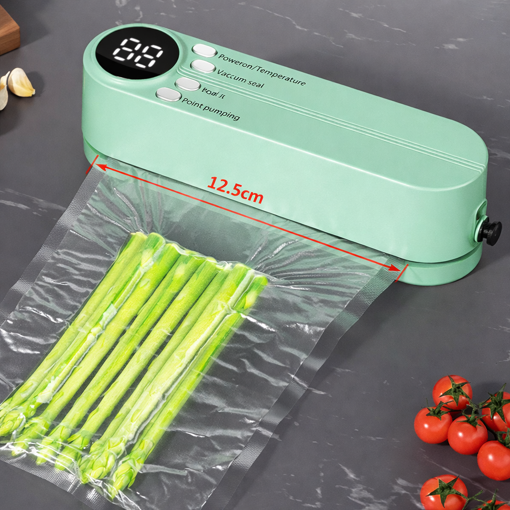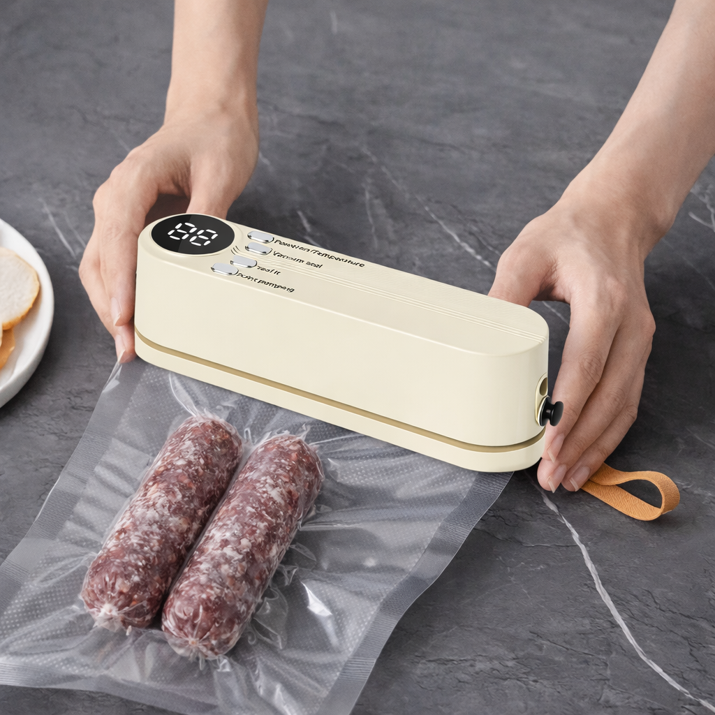 Der kabellose Vakuumierer Kass von Novendi ist Ihr neuer bester Freund in der Küche! Dieses kompakte Wundergerät funktioniert komplett kabellos und ist wiederaufladbar, sodass Sie überall vakuumieren und versiegeln können, zu Hause, auf dem Balkon oder sogar im Urlaub. Mit der eingebauten Luftpumpe entfernen Sie mühelos Luft aus Beuteln und Behältern, wodurch Ihre Lebensmittel deutlich länger frisch bleiben. Außerdem kann das Gerät auch als Luftpumpe verwendet werden.
