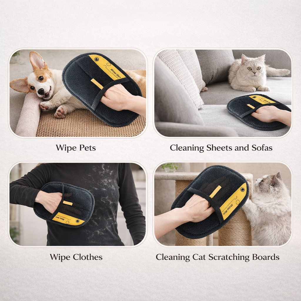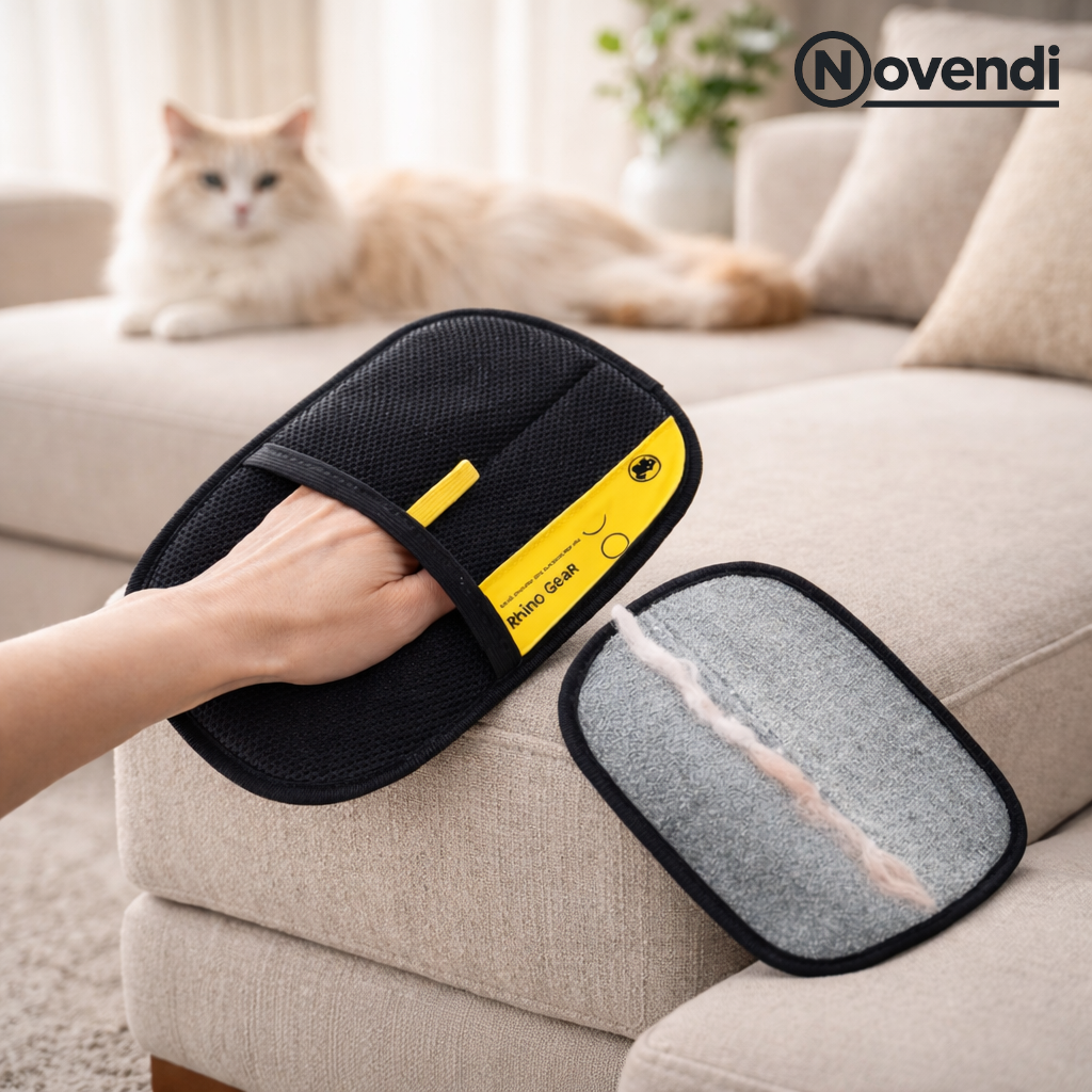 Mit dem Novendi Tierhaarentferner Fuzzi, der für Hunde, Katzen und andere pelzige Haustiere entwickelt wurde, lassen sich Tierhaare einfacher und effizienter entfernen. Dank der fortschrittlichen elektrostatischen Technologie ziehen die Handschuhe lose Haare, Flusen und Staub mühelos an, ohne dass Chemikalien oder klebrige Rollen erforderlich sind.