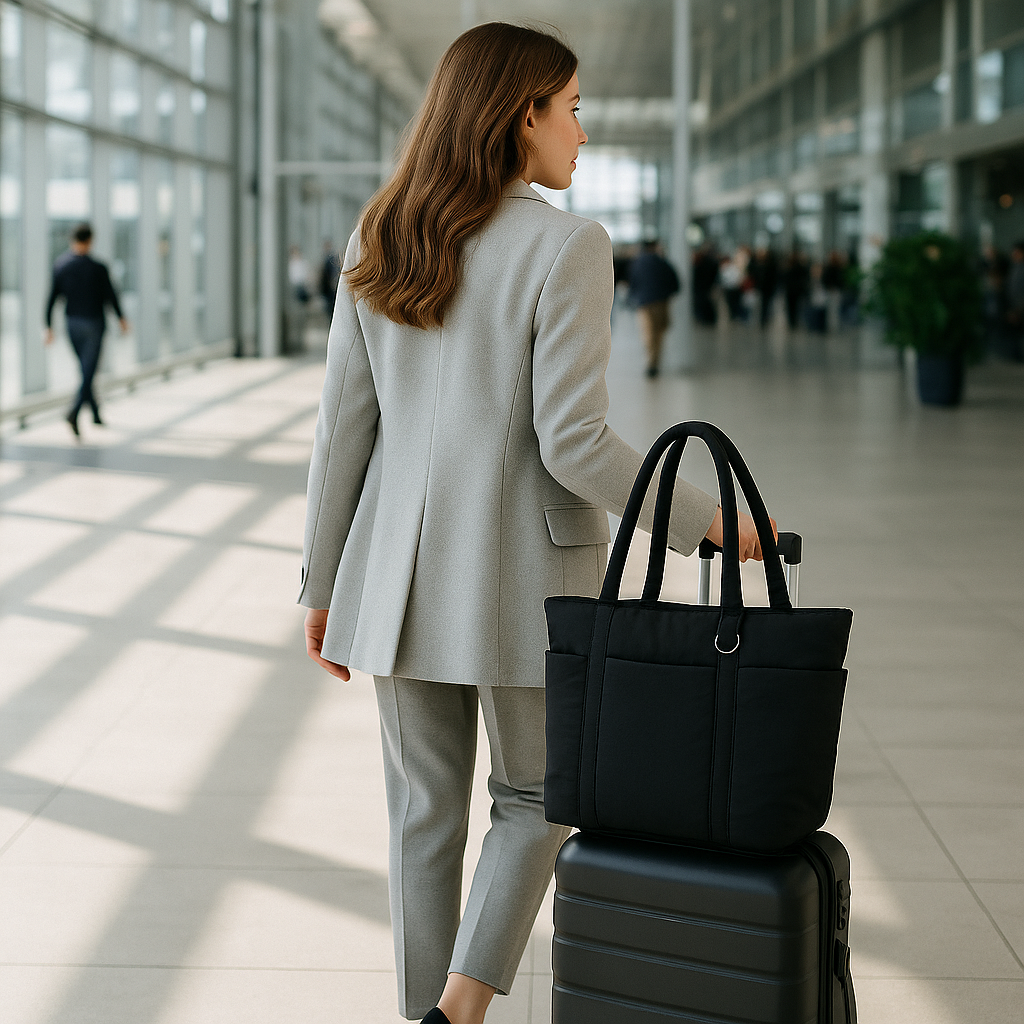 Perfekt für unterwegs: Sie können die Tasche einfach über den Griff Ihres Koffers schieben und haben so die Hände frei.